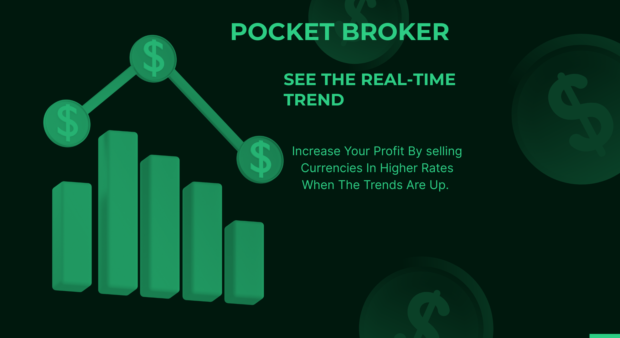 Pocket Broker is new trading app using the people from all around the world. Moreover in which you can buy and sell currencies in high price by seeing the real-time graphs and charts. Additinally it offers the trend graphs that help users to see the current price of currencies and follow the trends to sell their currencies to gain bif profit from it.